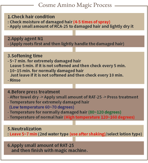 CAM is a magic that is designed to have less damage and do magic procedure stably with PH4.5~PH5.5 because it doesn’t use monoethanolamine, triethanolamine, ammonium thiogycollate and monoethanolanmiethioglycolate.